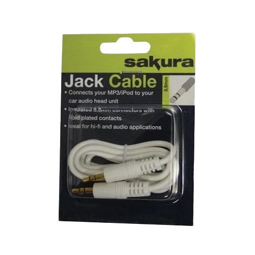 Sakura 3.5mm Jack Cable to connect your MP3/Ipod/phone audio to your car audio unit. This cable is 3.5mm, insulated with gold plated contact terminals to