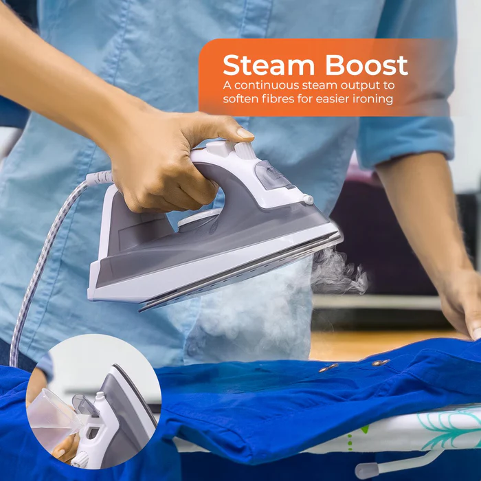 With professional steaming power and fabric care, the Geepas 1600W Steam Iron makes quick work of the ironing pile. Its
