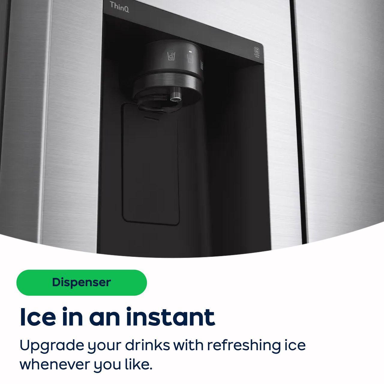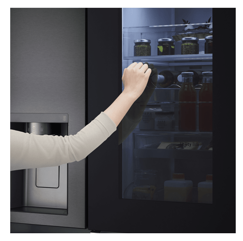 Our InstaView™ feature is a sleek glass panel that lights up with two quick knocks, with the InstaView™ ThinQ™, the glass panel is enlarged by +23%, allowing you to see more of your food and drinks inside.