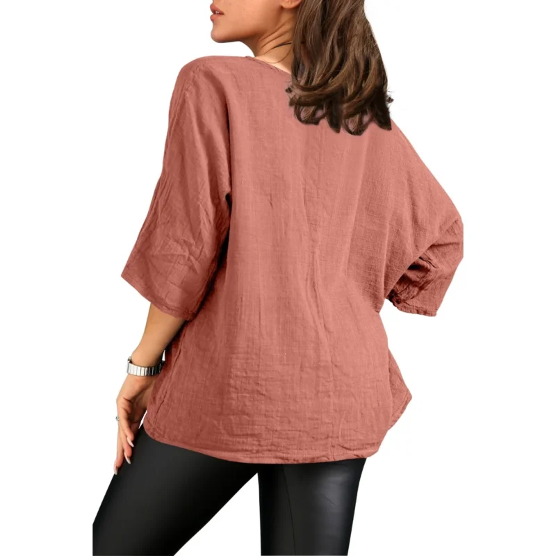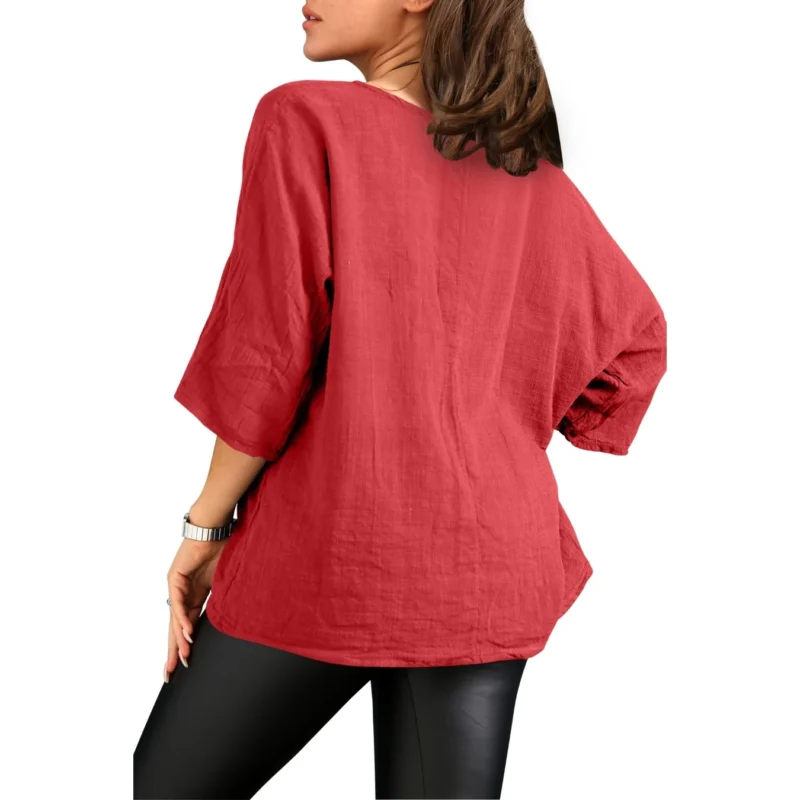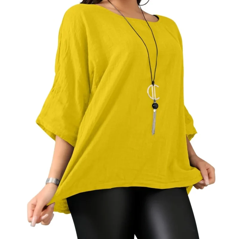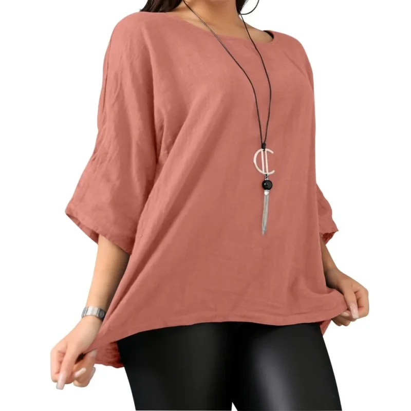Classic season-less favourite. Features 100% Cotton material – Plain – Crew Neck – Long Sleeve – Necklace Tunic Top. Elevate your everyday wardrobe with this Italian cotton oversized tunic, designed for comfort style.